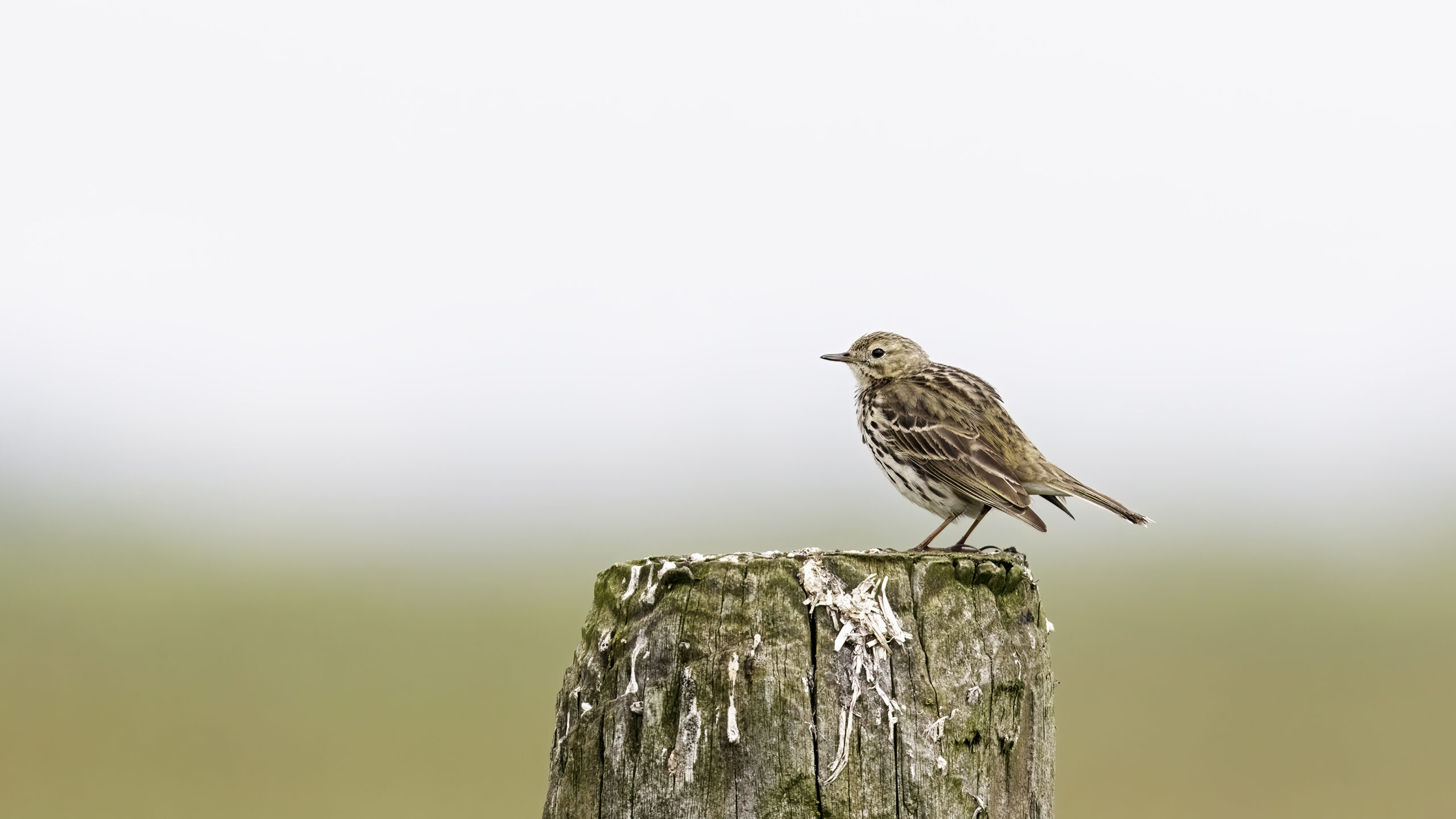 Zeldzame weidevogel, maar op trek nog regelmatig te zien. Vertrouwt bij verstoring lang op zijn schutkleur.