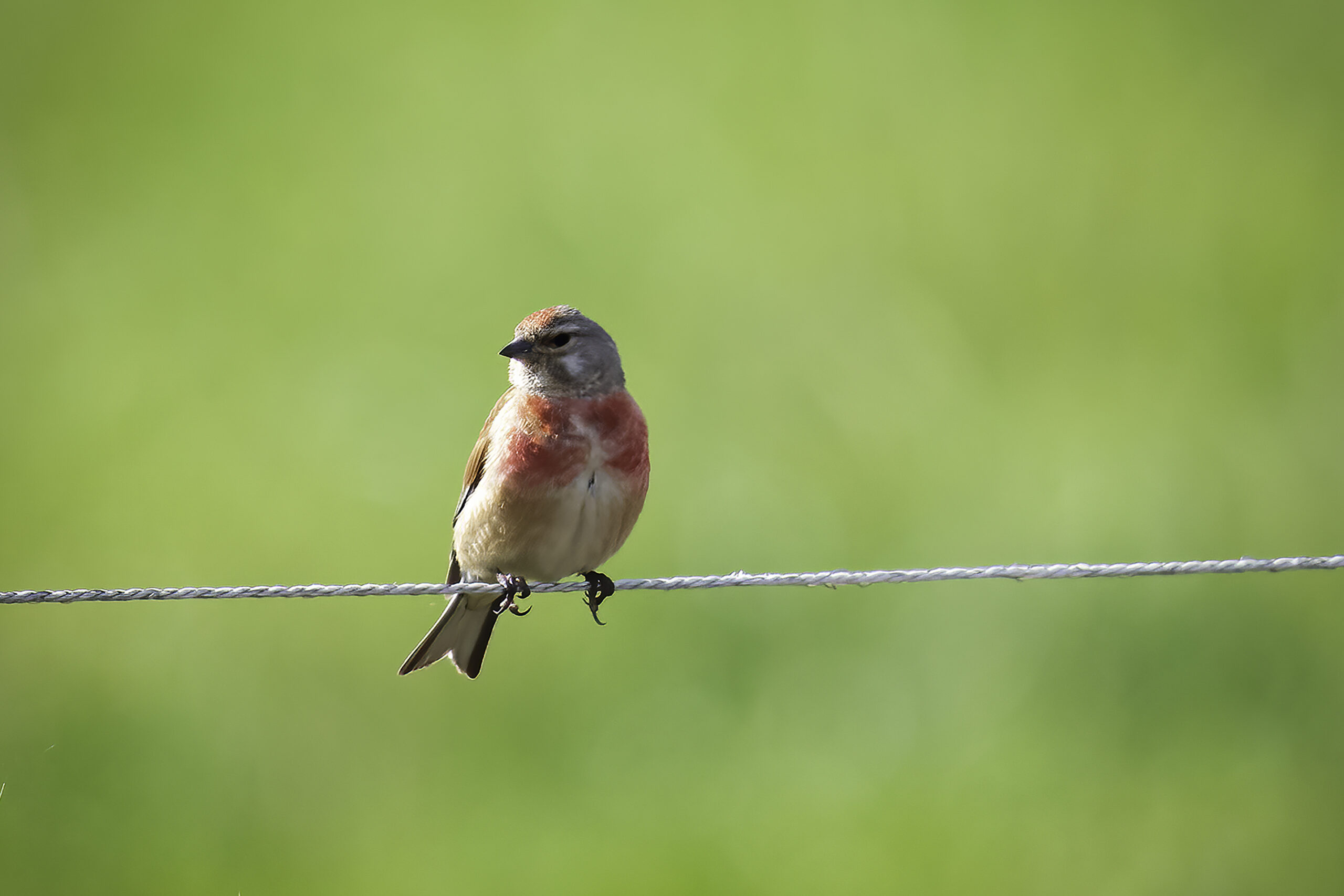 Vaak te zien in groepjes, waarbij de vogels erop los kwetteren. Een man kneu in prachtkleed heeft een fraaie karmijnrode borst en 'baret'.