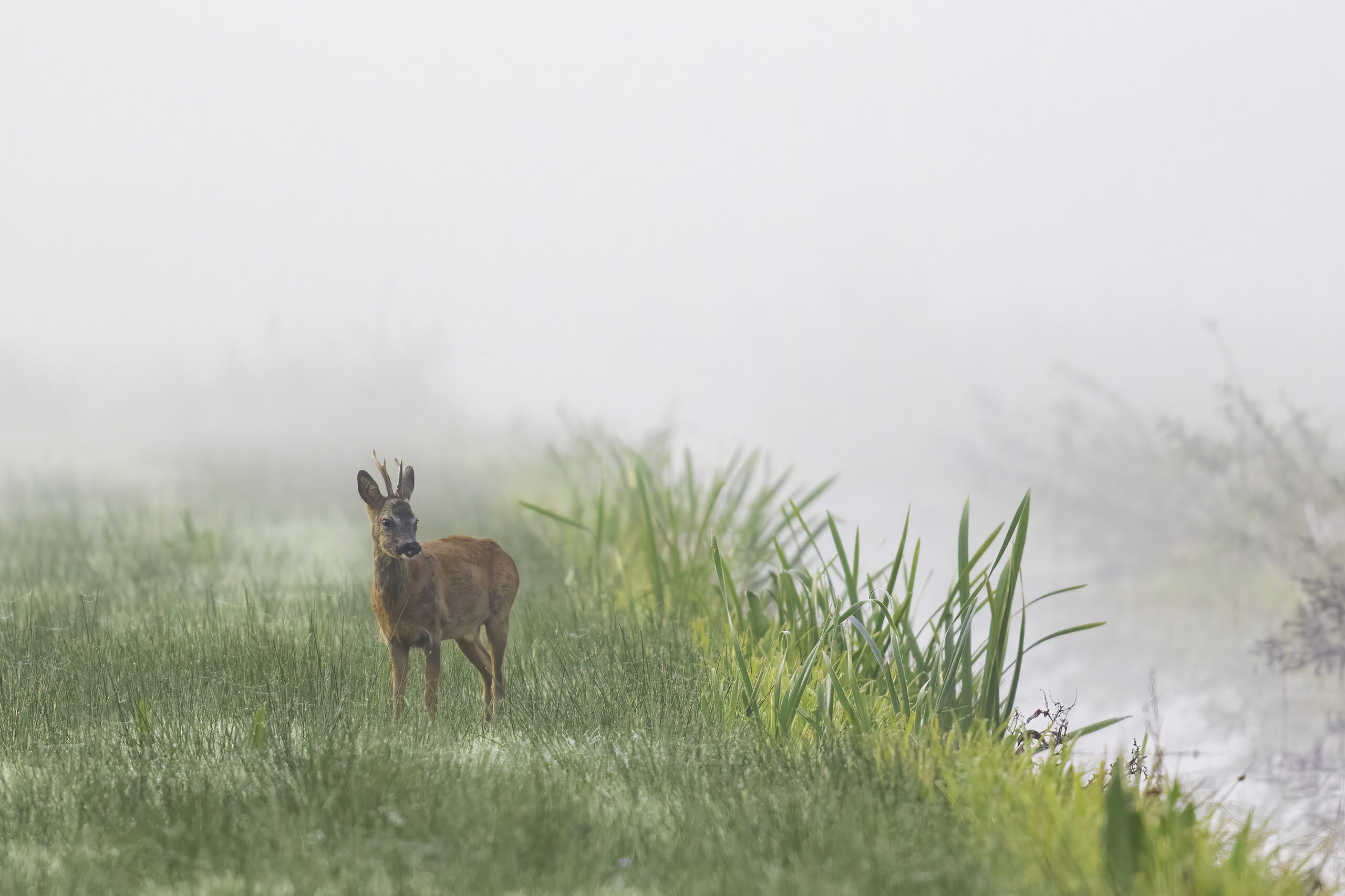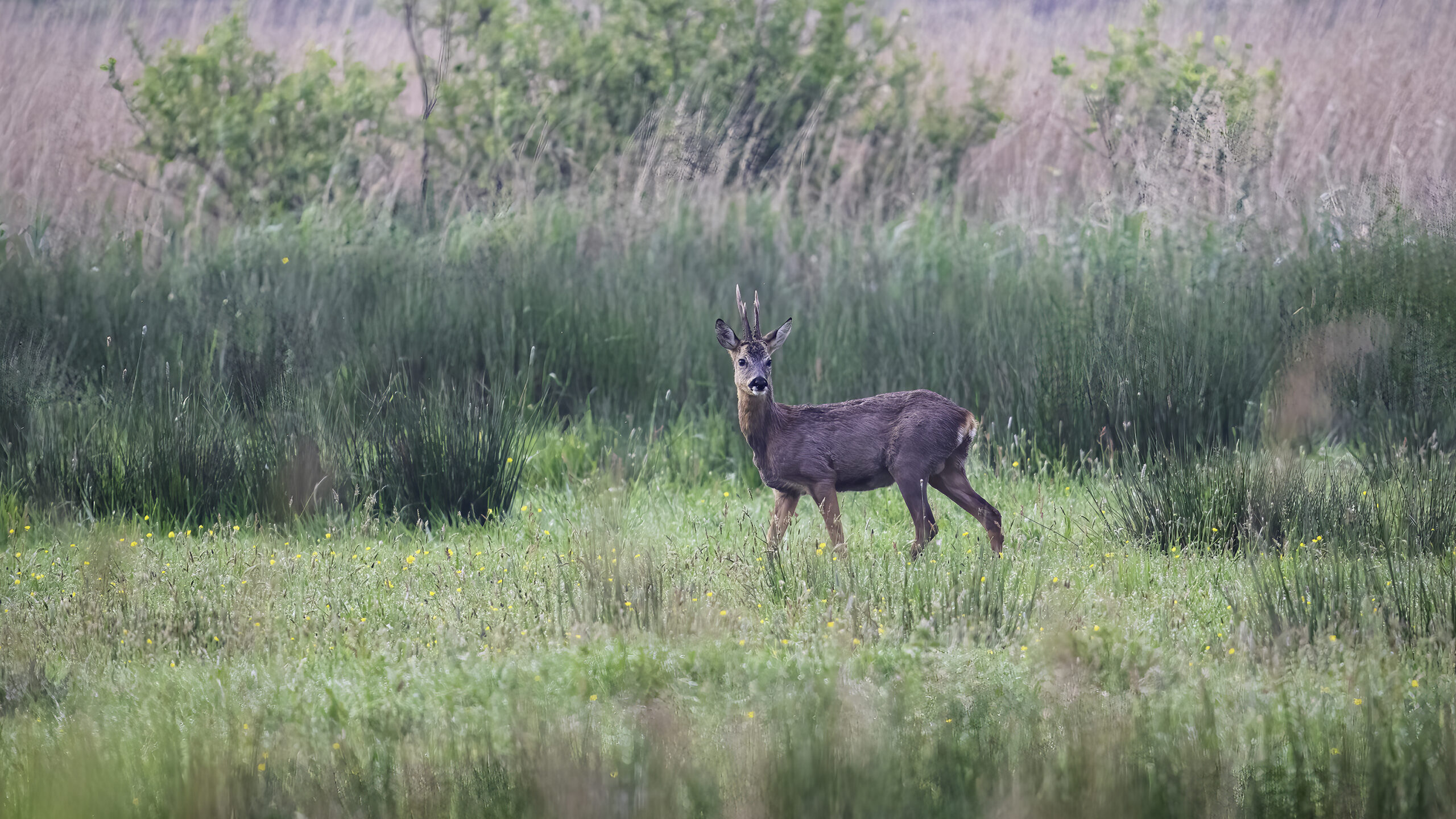 Een nieuwsgierige reebok in natuurgebied 'De Grote Wielen' nabij Leeuwarden.