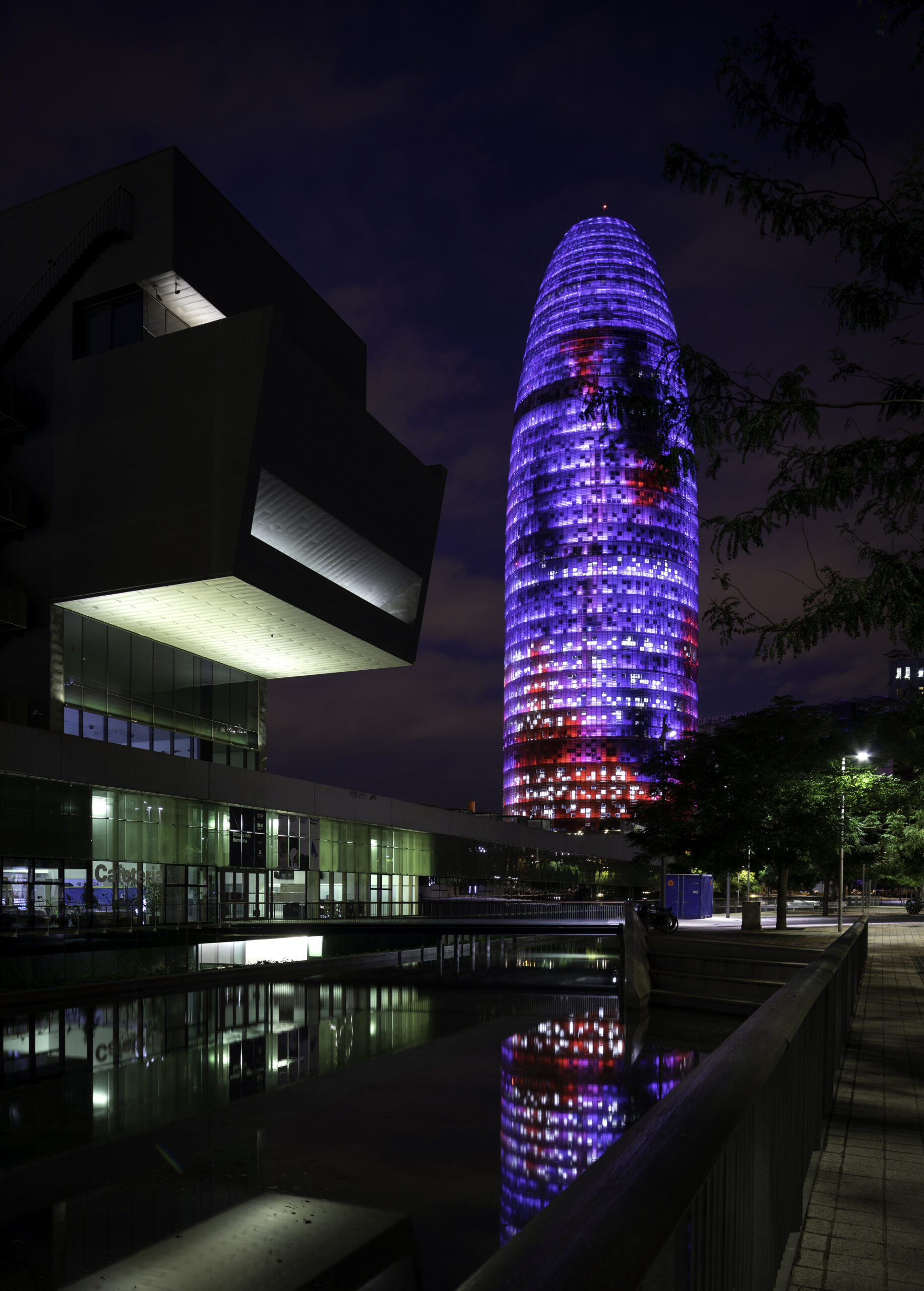 Voorheen bekend als Torre Agbar. De 144 meter hoge toren werd geopend in 2005 en wordt 's nachts verlicht door led-verlichting.