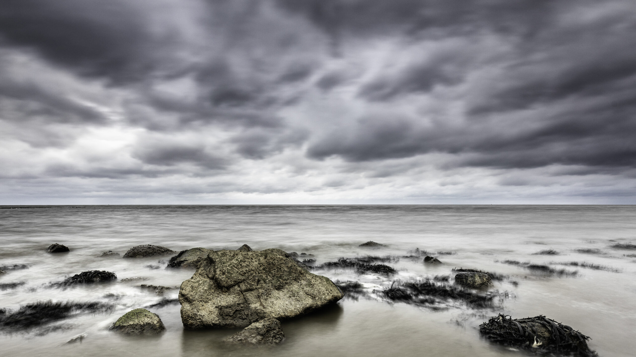 De kop van de Afsluitdijk, nabij het dorp Zurich, tijdens een zomerstorm.