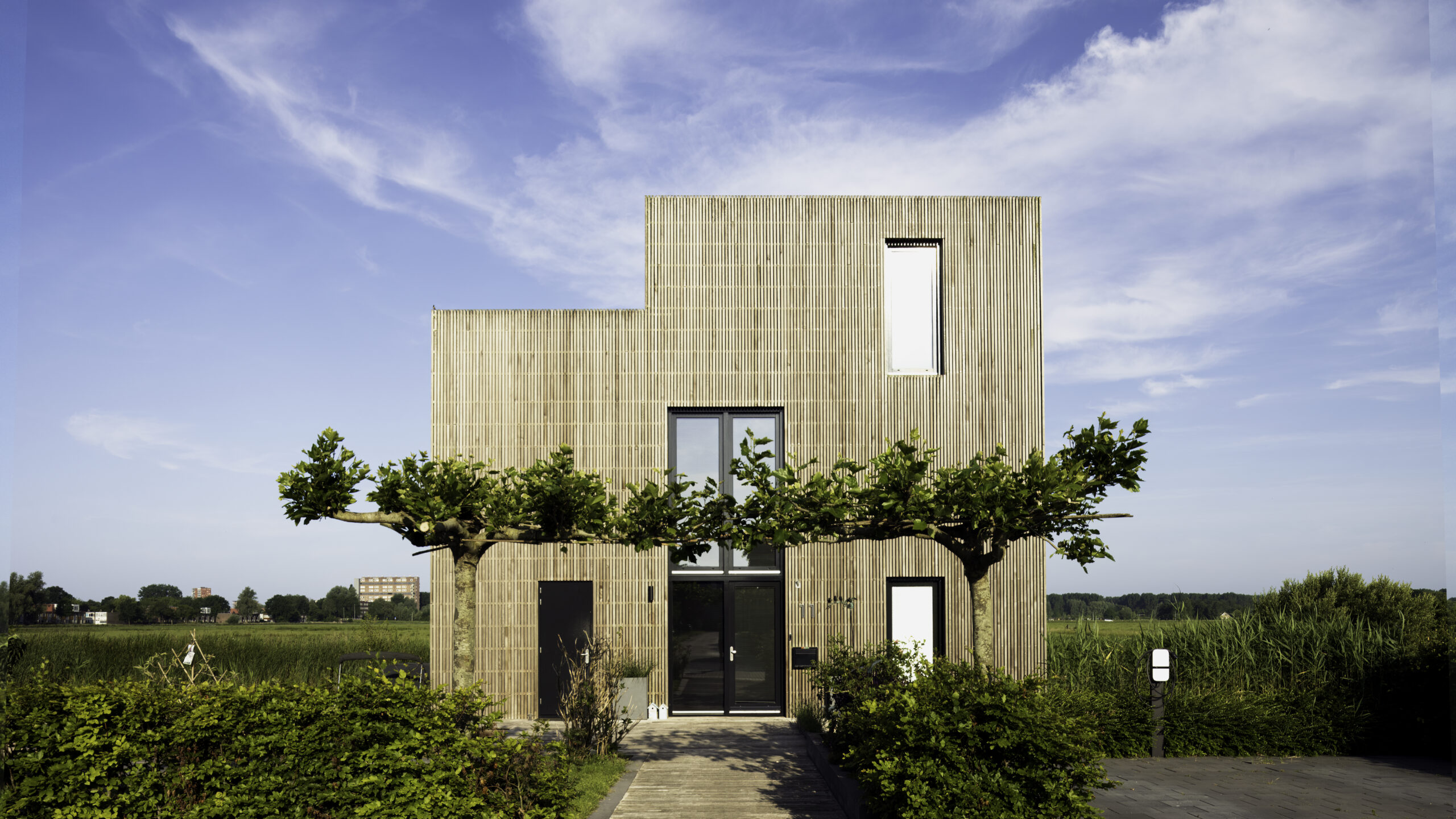 Onder architectuur ontworpen watervilla in kubistische stijl in de wijk Blitsaerd te Leeuwarden.