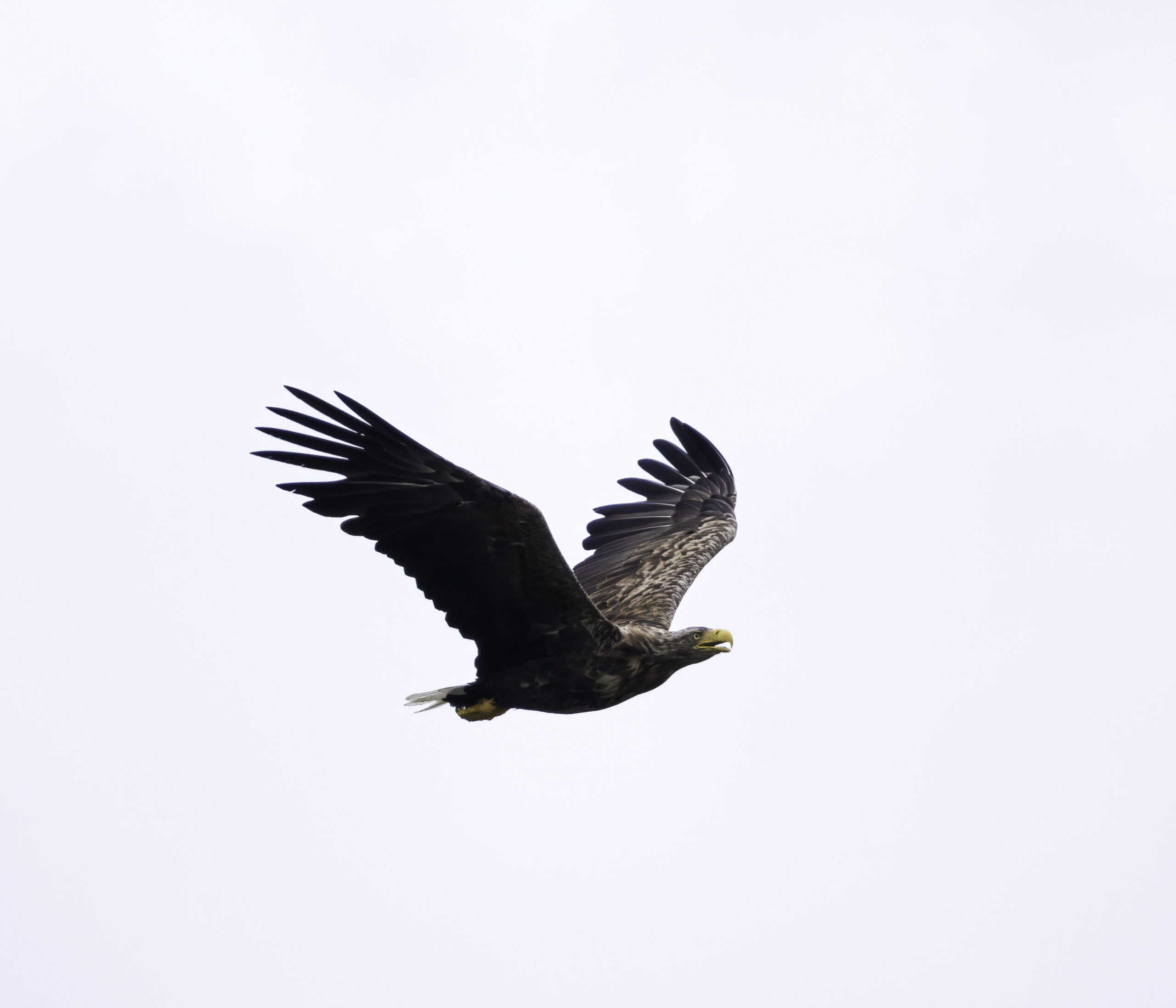 Een zeearend vliegt voorbij aan de vogelkijkhut 'De Ral' bij Piaam (Frl).